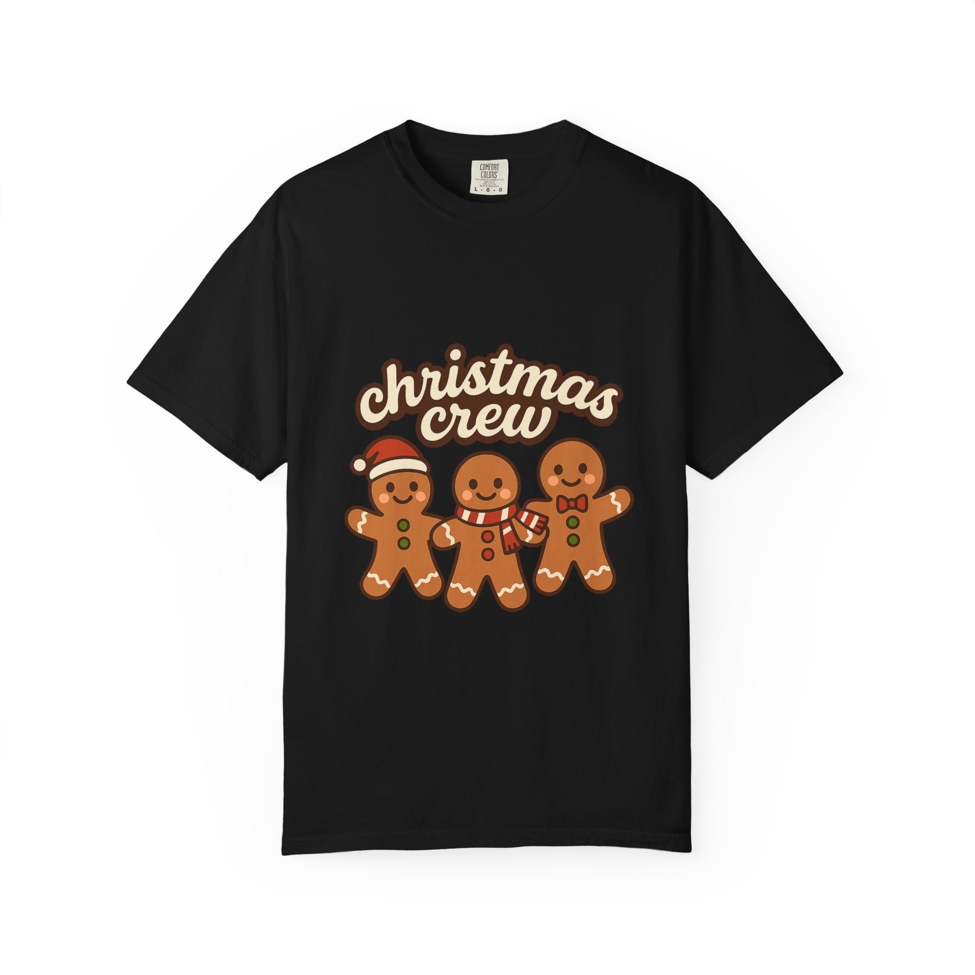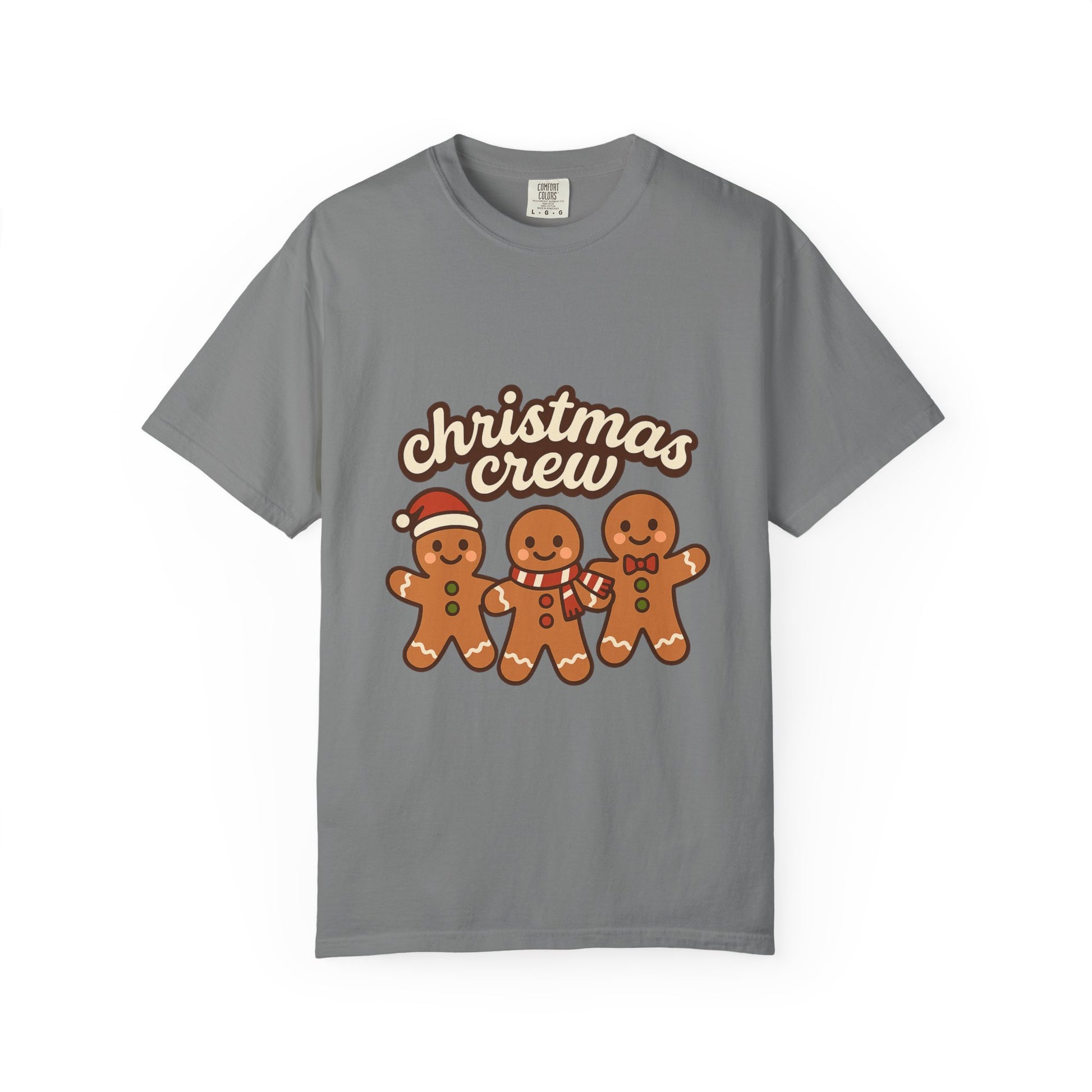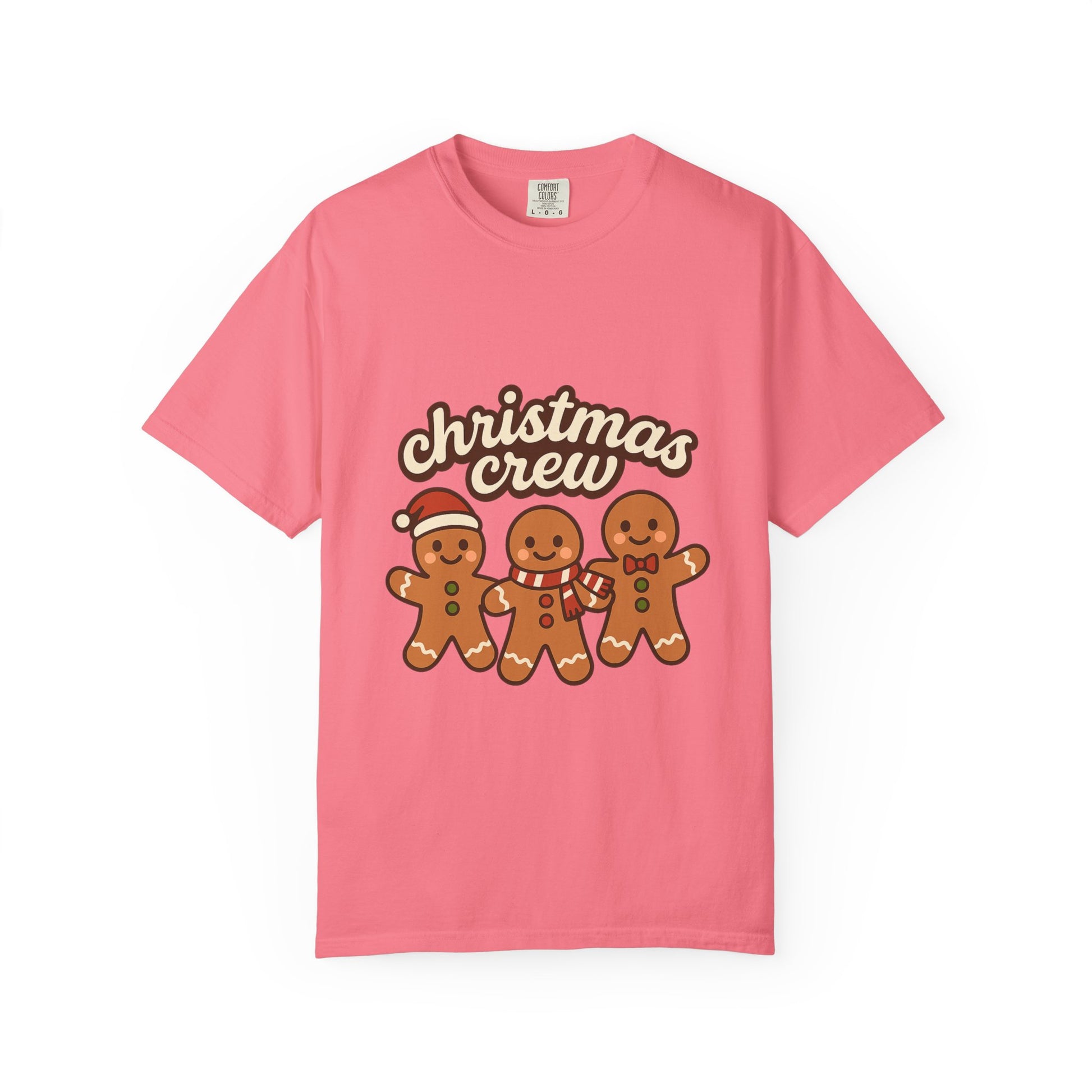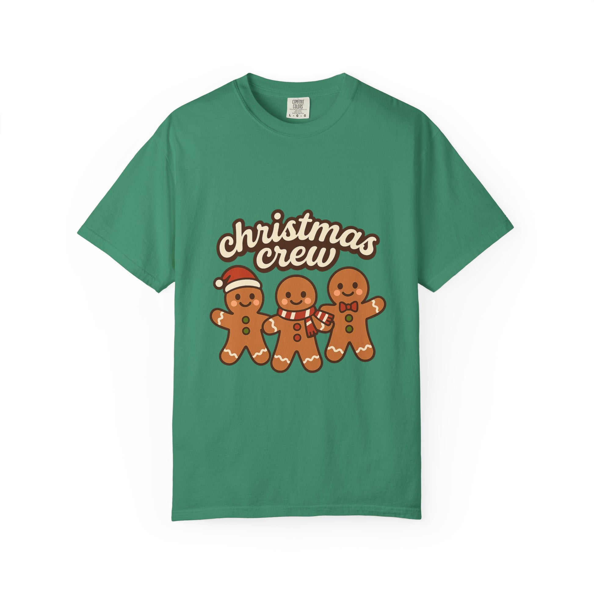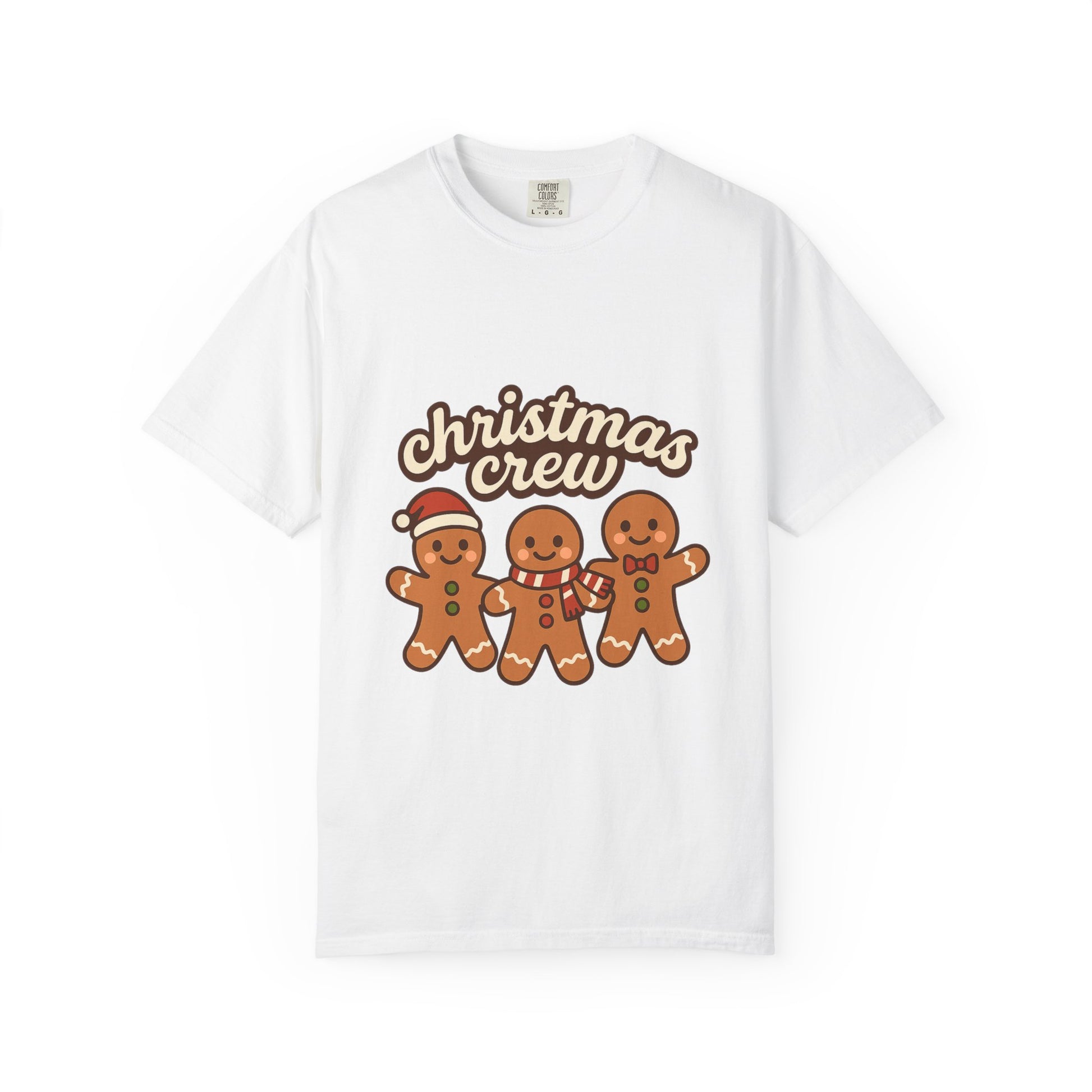 Introduce festive cheer to your wardrobe with our delightful unisex garment-dyed T-shirt. This shirt features a playful design of adorable gingerbread characters, perfect for bringing holiday spirit to any casual outfit. Its soft, pre-shrunk fabric ensures comfort for all-day wear, making it an ideal choice for family gatherings, holiday parties, or cozy nights at home. Crafted for those who appreciate fun, seasonal attire, this shirt is great for both kids and adults who want to celebrate the Christmas season in style. Perfect for casual get-togethers, gift-giving, and making memories this holiday season!