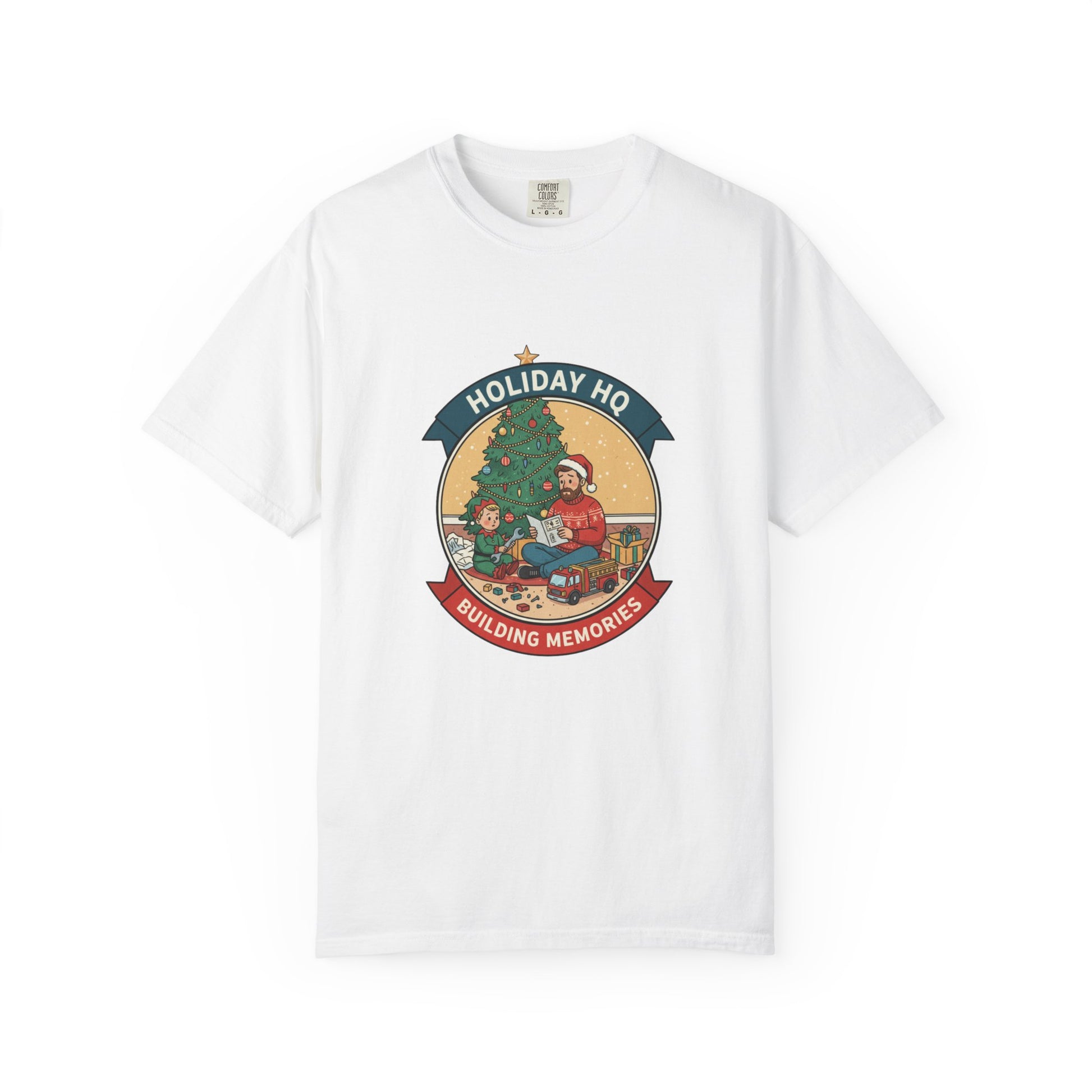 A comfortable and durable T-Shirt featuring a heartwarming scene of a dad and son putting together toys by the Christmas tree. This shirt exudes a cozy and festive vibe, perfect for the holiday season. Ideal for family-oriented individuals looking for a meaningful and heartwarming holiday-themed shirt.