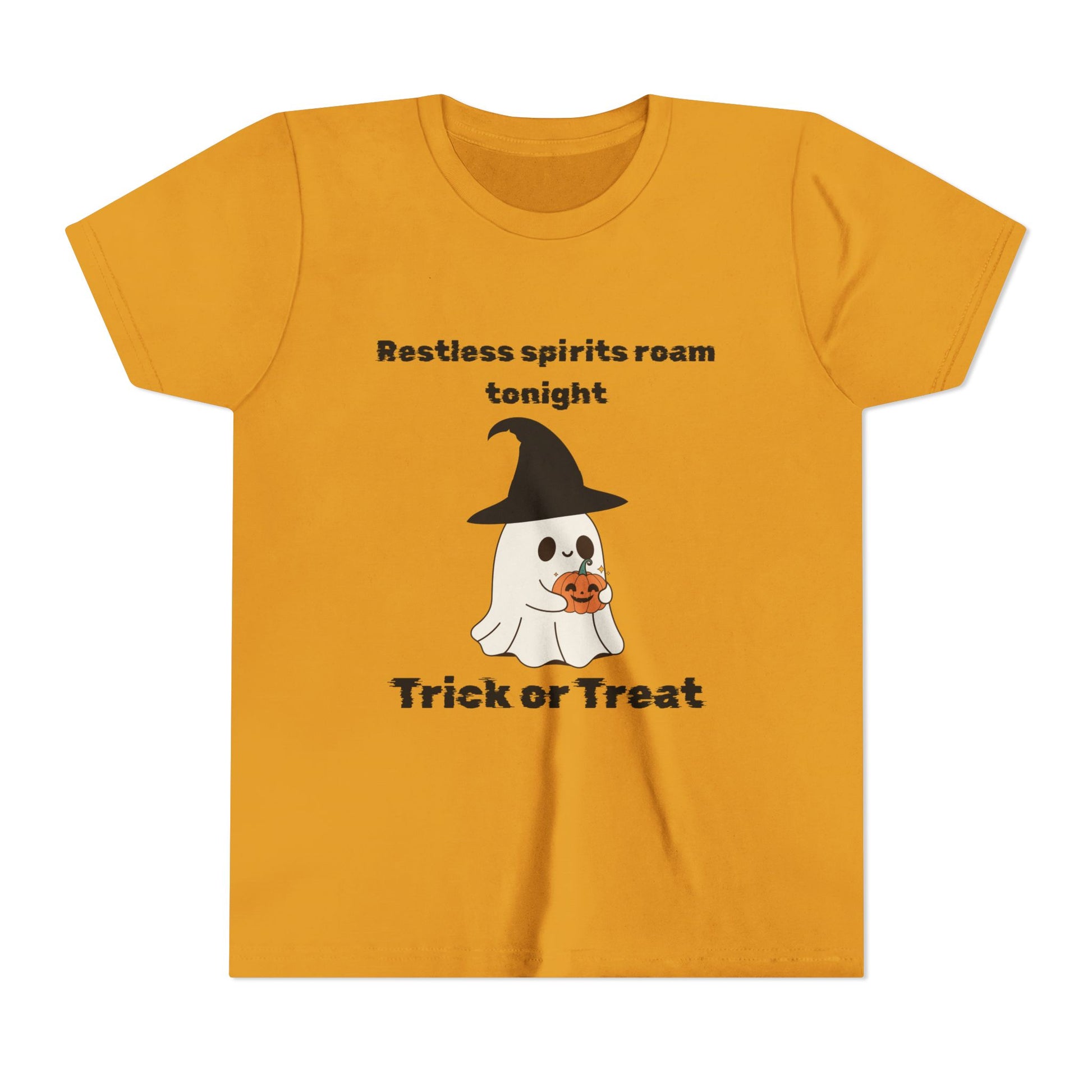 A trick or treat t-shirt perfect for Halloween enthusiasts looking to add a festive touch to their wardrobe. This tee is made with extra lightweight, ring-spun cotton for ultimate comfort and softness. The retail fit ensures a perfect, comfy fit in all situations while the crew neckline delivers a versatile, modern, and clean-cut style. Suitable for Halloween celebrations and spooky-themed parties.