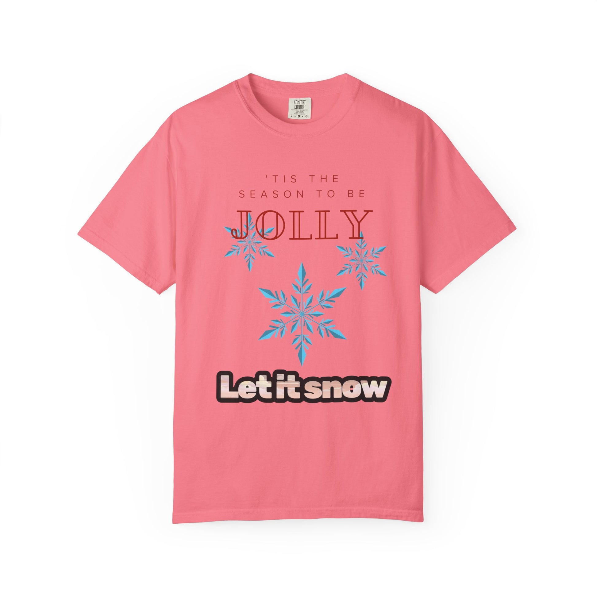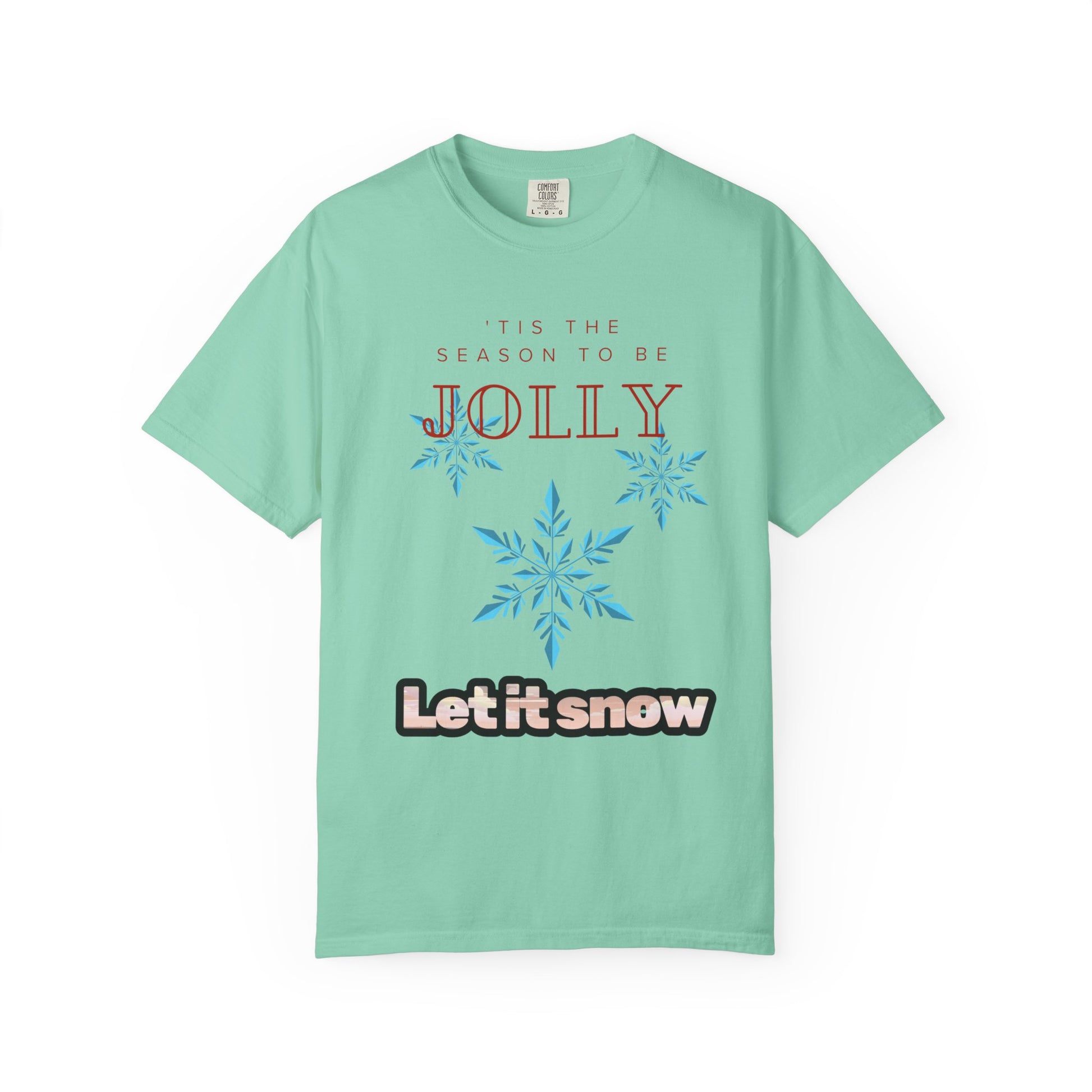 Get into the festive spirit with this jolly 'tis the season to be jolly let it snow T-shirt. Made of 100% garment-dyed cotton for a soft color and texture, this comfortable and relaxed fit tee is perfect for the holiday season. Available in sizes S to 4XL and 58 colors, it's a versatile wardrobe staple for both men and women.