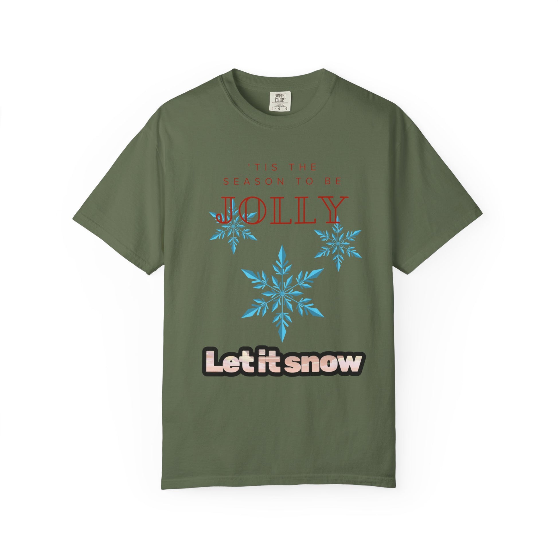 Holiday Season Unisex Garment-Dyed T-shirt - 'Tis the Season to be Jolly Let It Snow