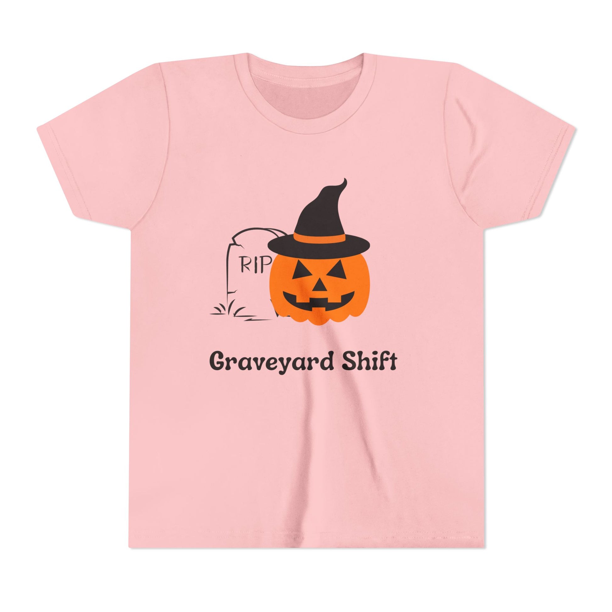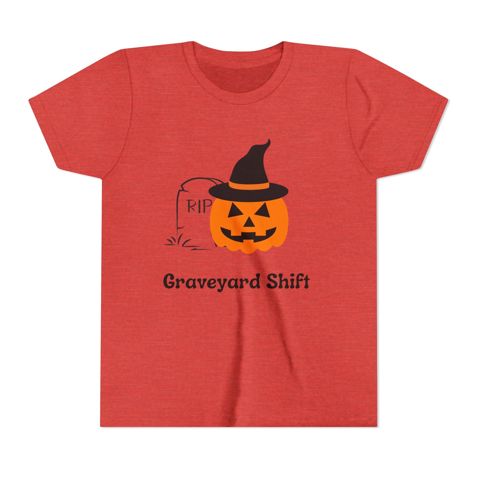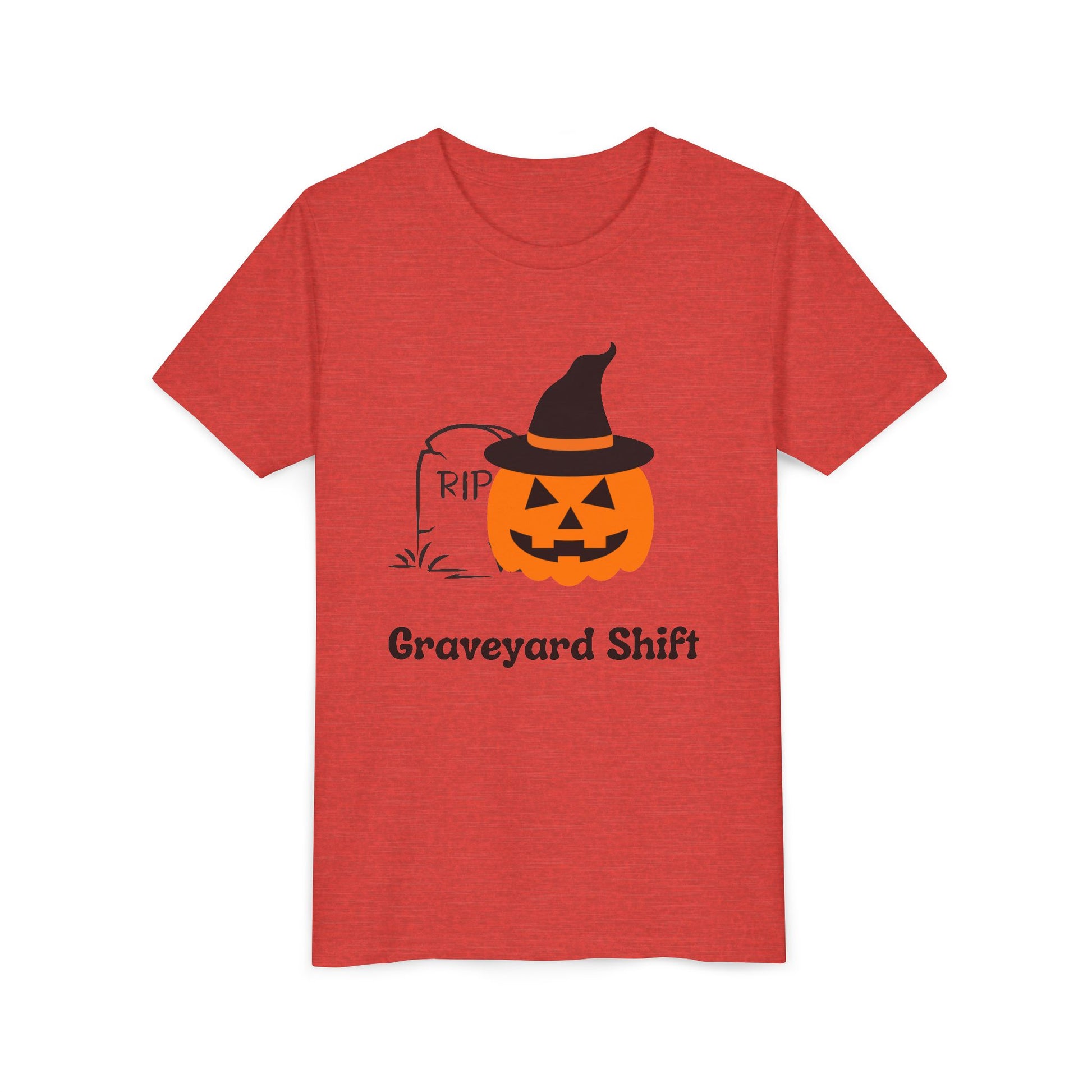 A spooky Halloween t-shirt featuring the design 'Graveyard Shift'. This tee is made with extra lightweight, airlume-combed, ring-spun cotton for ultimate comfort. Perfect for Halloween parties or for those who love spooky vibes.