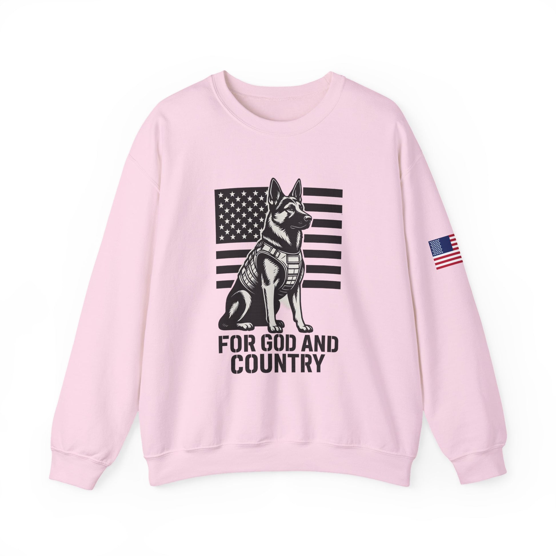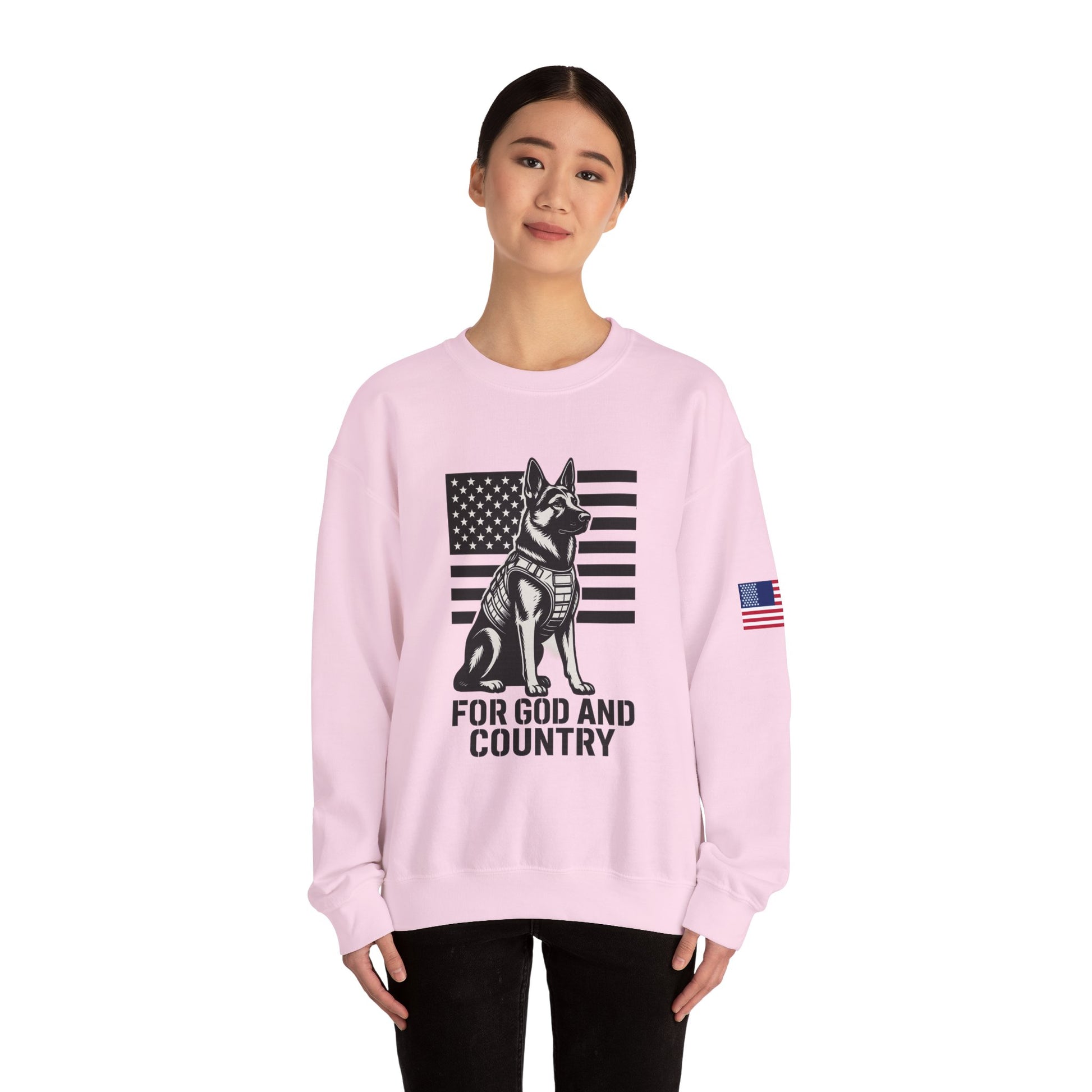 Patriotic Dog Sweatshirt, For God and Country Crewneck, Military Support Apparel, Veteran Gift, USA Flag Sweater