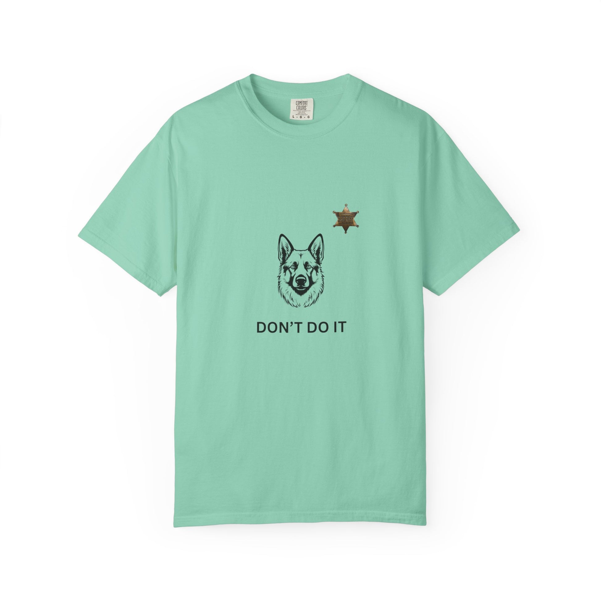 This police dog-themed T-shirt with a 'just don't do it' design gives off a cool and strong vibe. Perfect for dog lovers, law enforcement supporters, and fans of German Shepherds. Ideal for casual wear, lounging, or as a gift for birthdays, holidays, and Police Appreciation Week.