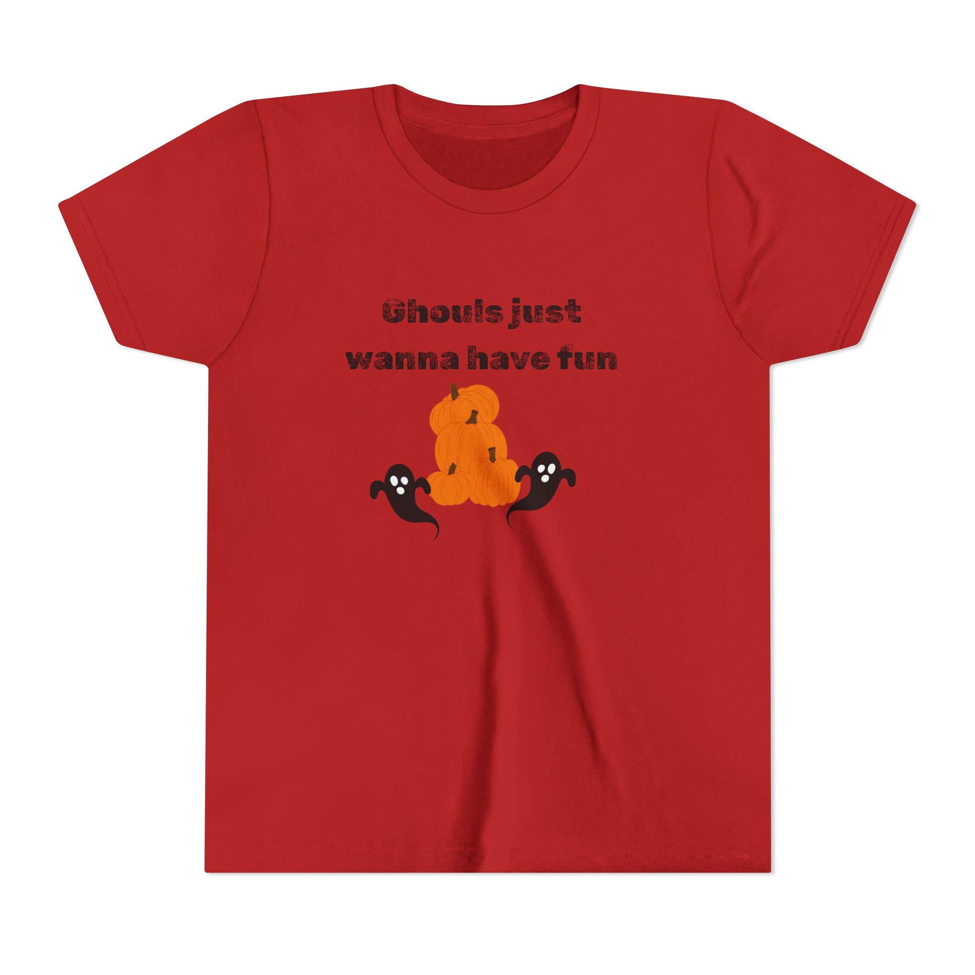 This ghouls just want to fun Halloween t-shirt exudes a spooky, yet playful vibe perfect for Halloween enthusiasts. It is a must-have for Halloween parties, trick-or-treating, and other spooky celebrations.