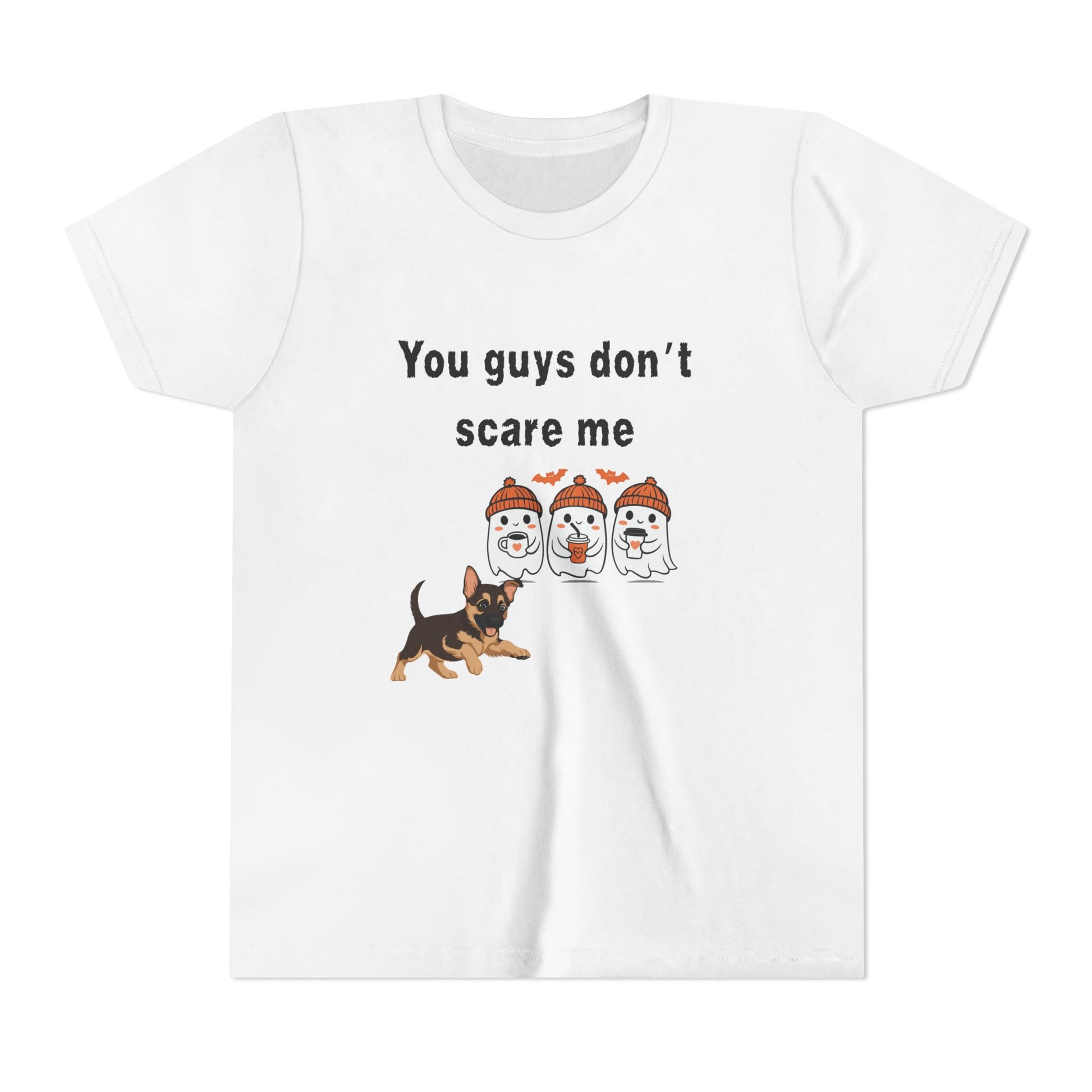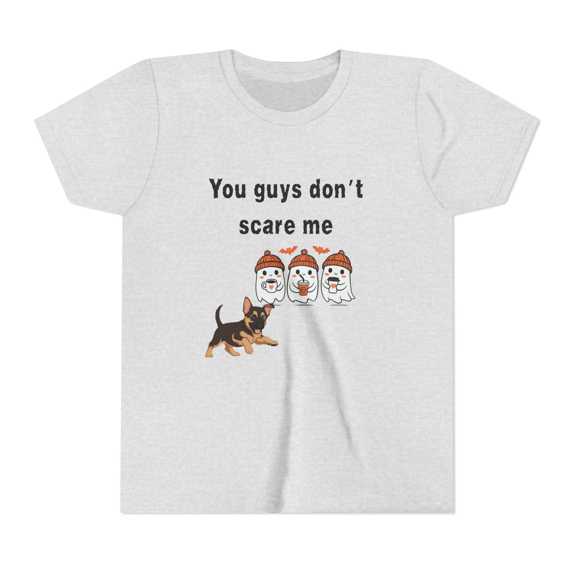 Youth Short Sleeve Tee with Fun Halloween Design, Funny Dog Scare Me Shirt